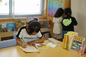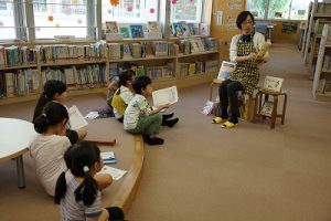 図書室では、昼休みに、図書館司書の先生が本の読み聞かせをしています。題して「お話タイム」です。9月はなかなか実施できなかったのですが、今日、久しぶりに「お話タイム」が行われました。今日は、1年生がたくさん来てくれていました。上手な読み方を学ぶこともできますね。