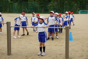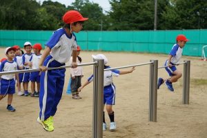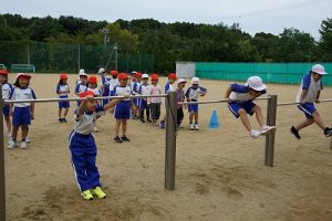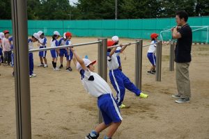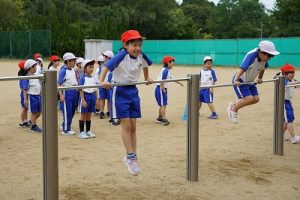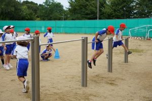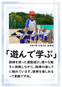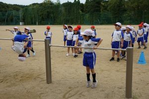 1年生の体育科では、グラウンドで「鉄棒遊び」をしていました。楽しそうにぶら下がる姿が最高です。鉄棒と仲良くなってくださいね。