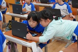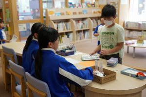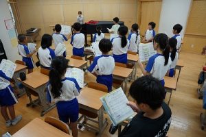 5年生の音楽科では、「こげよマイケル」という曲を合唱していました。和音の響きの移り変わりを感じ取りながら合唱することを目指しています。難しい勉強をしていますね。