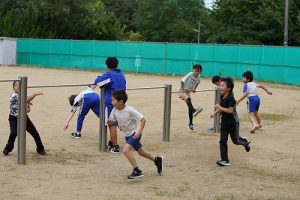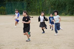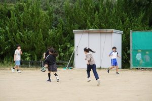 休み時間の様子です。今日は、グラウンドで遊ぶ子供がいつも以上に多いようでした。元気いっぱい走り回っていました。