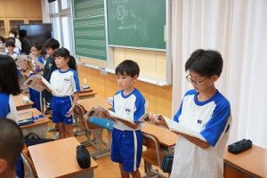 おはようございます。今日は、3年生が校外学習でスーパーマーケットに見学に行きます。教科書やネットの画面等ではなく、実際に見ることで、より深く、実感を伴った理解ができることでしょう。頑張ってきてほしいと思います。