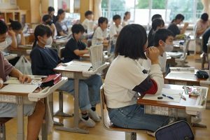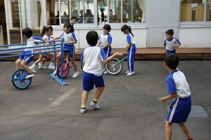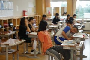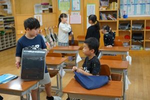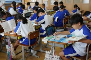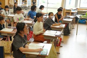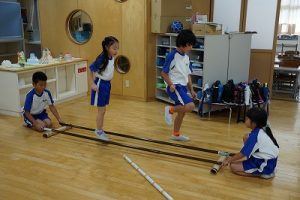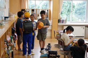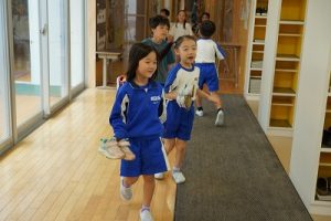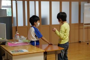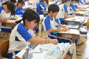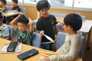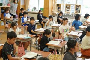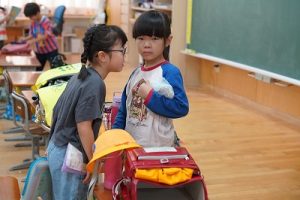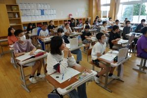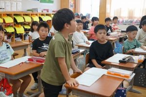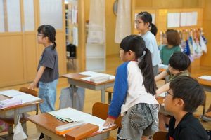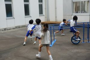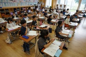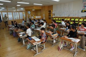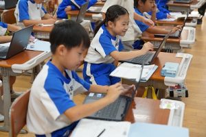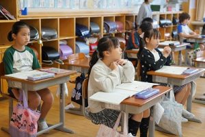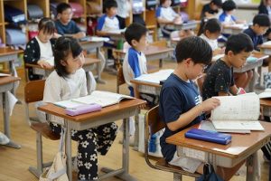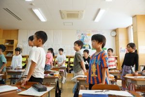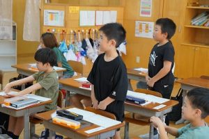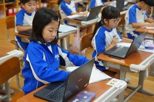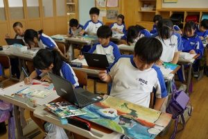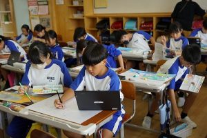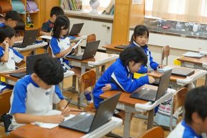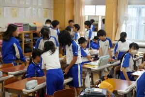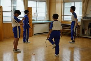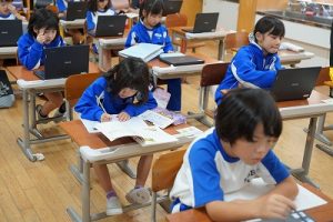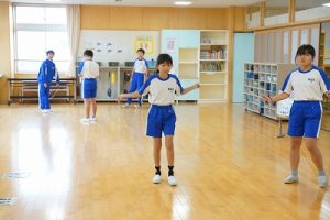 8時ごろの様子です。全校的に、縄跳びをしている子供が多いようです。2年生は、タブレットPCにアップされている時間割を見ながら、連絡帳を書いていました。朝のルーティンなのですね。