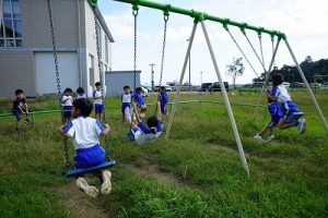 2校時後の休み時間の様子です。2年生は、ブランコが大好きですね。順番を守って交代しながら遊んでいるのがいいですね。3年生教室では、係活動の掲示物を作っていました。休み時間も頑張っていますね。