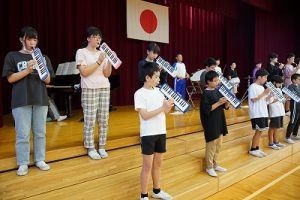 6年生は、学習発表会で演奏する「木製」の練習をしていました。美しい音色が響き渡っていました。