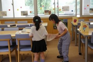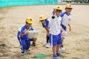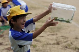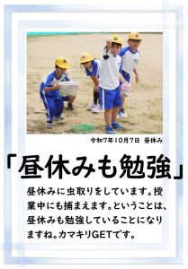 昼休みの様子です。虫取りをしていた1年生が、カマキリをつかまえて見せてくれました。リフレッシュして、午後も頑張ってほしいです。