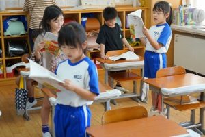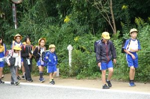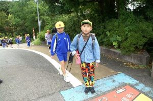 朝の登校風景です。1年生の子供は、「スマホに載せてね」「スマホに送ってね」などと言っています。ホームページという概念がないため、スマホに送られると思うのでしょう。かわいい発想ですね。
