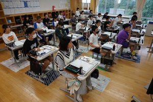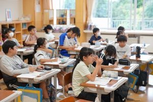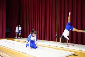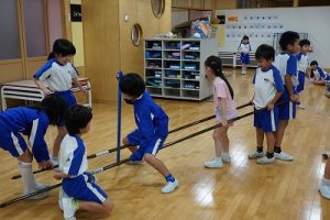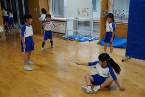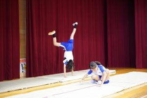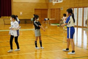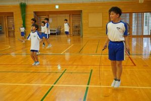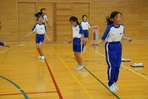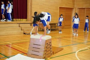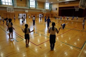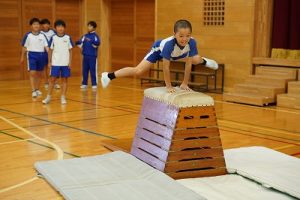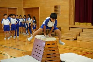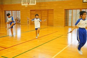 5年生は、学習発表会に向けて、なわとび、マット、跳び箱の練習に取り組んでいました。楽しそうに体を動かしているのがいいですね。