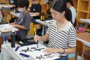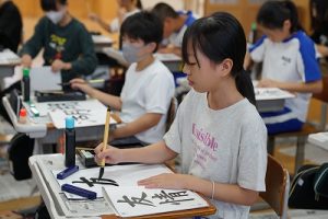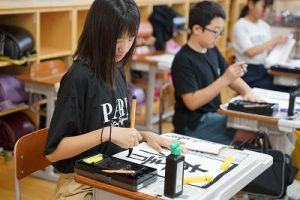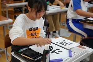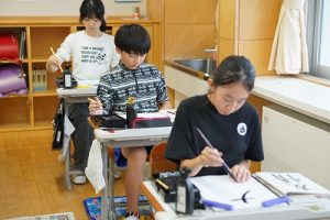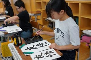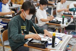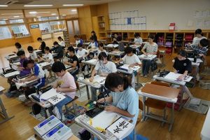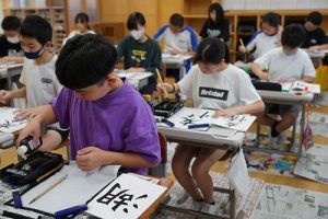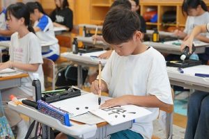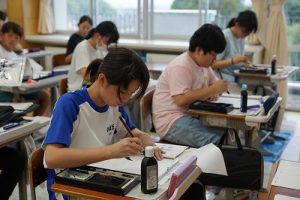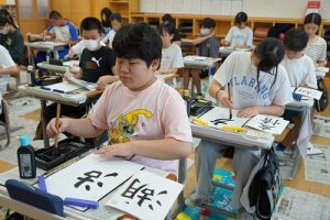 6年生の書写の様子です。学習発表会に展示する作品を書いています。とても姿勢良く、集中して書いている姿が気持ちよく感じました。