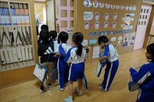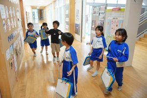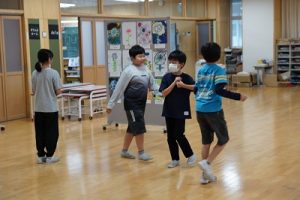 今日は雨模様ですので、校舎内で遊んでいました。廊下や階段を走らないように気を付けましょうね。