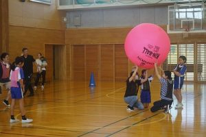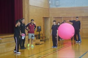 5年生の親子活動が行われました。氷見市スポーツ推進委員の方々にご指導いただき、ニュースポーツの「キンボール」を体験しました。楽しい経験ができて、とてもよかったと思います。氷見市スポーツ推進委員の方々には、先日の親子活動で「ドッヂビー」を指導してくださったことに続いて、今年度、2回目の来校となります。本当にありがとうございました。育友会の学年委員さんには、お世話いただき、ありがとうございました。参加してくださった皆様にも感謝申し上げます。ありがとうございました。