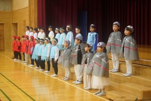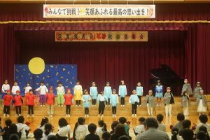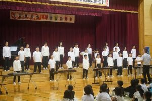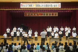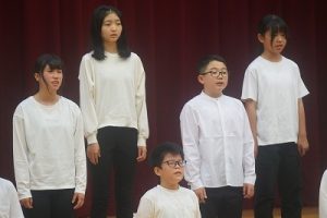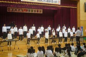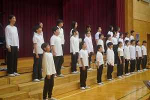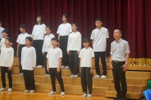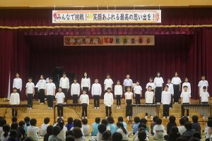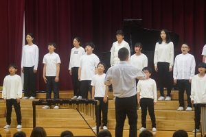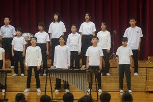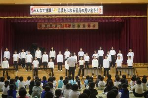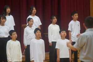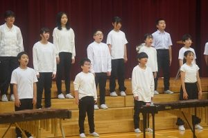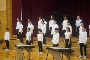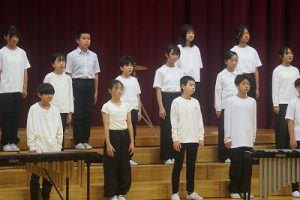小学校生活最後の学習発表会を、6年生全員で成功させたいと、音楽科の授業を中心に、休み時間にも練習を重ねてきました。歌詞や曲に込められた熱い想い、雄大なイメージが会場全体に伝わるよう、心を込めて表現します。最後まで、どうぞお楽しみください。