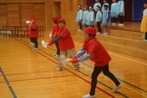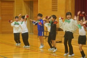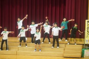 2年生は、音楽に合わせて体を動かす楽しさを感じながら、「ジャンボリーミッキー」「ティニクリン」「ドレミの歌」「勇気100%」の4曲に取り組みました。かわいらしい振り付けや元気いっぱいの動きの中に、仲間と協力する姿や、挑戦する気持ちが込められています。子供たちの笑顔あふれるダンスを、どうぞお楽しみください!