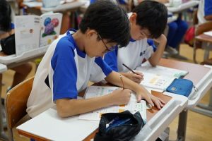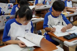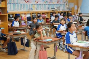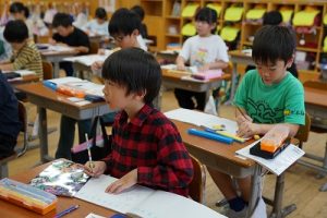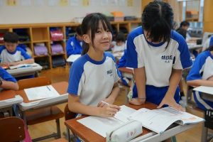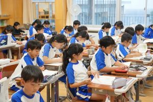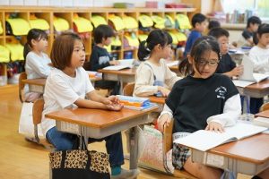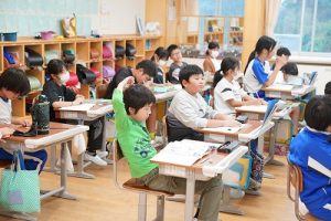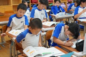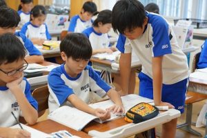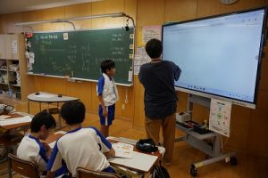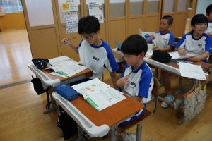 5年生の算数科では、「分数」「小数」「整数」の関係を学数しています。自力解決を目指したり、友達と相談したりと、真剣に頑張っています。いい学習態度ですね。
