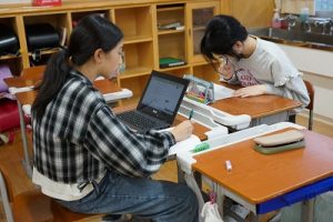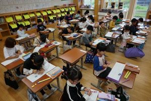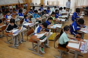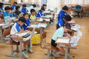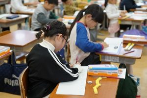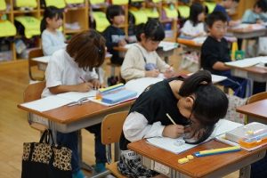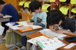 5校時の様子です。1年生は、5校時で下校となります。体育館での練習に熱がこもっていました。6年生は、なにやら企画が進行している雰囲気でした。