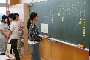 1年生の算数科では、「9+4」の計算をしていました。繰り上がりのある足し算です。ブロックなどを使って、自力解決に取り組む子どもたちの姿が素晴らしいです。