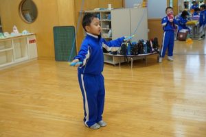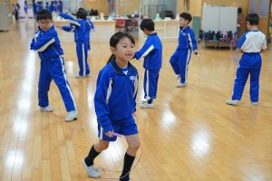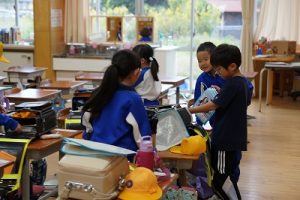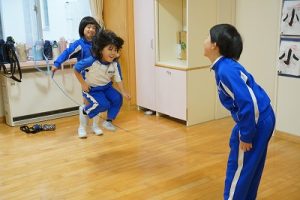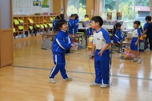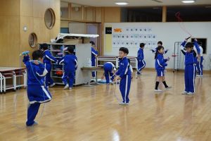 8時頃の様子です。運動でスタート、学習の準備でスタートなど、自分に合った方法で新しい1日をスタートさせています。