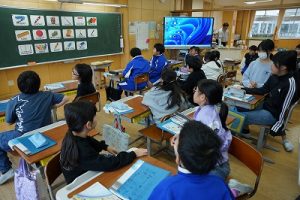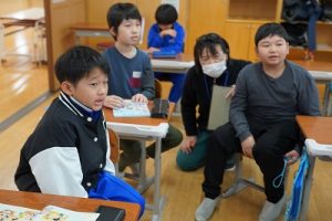 4年生は、いろいろな文房具を表す英語を学習していました。普段使わないような英語も出てきて、とても難しい学習です。