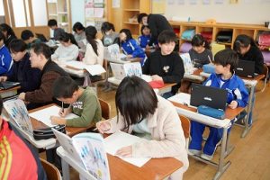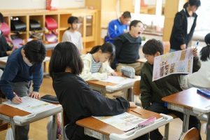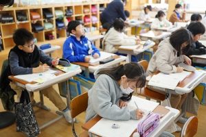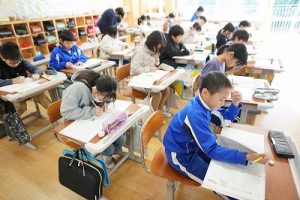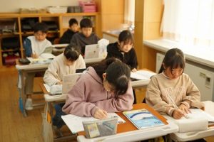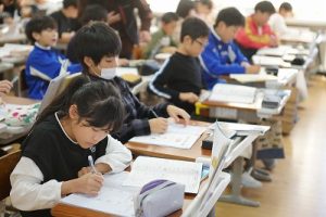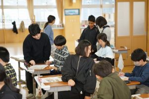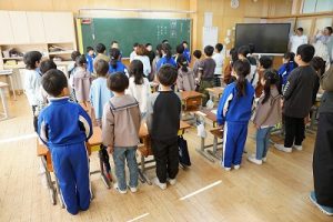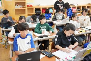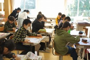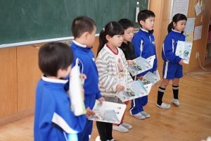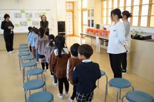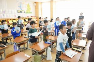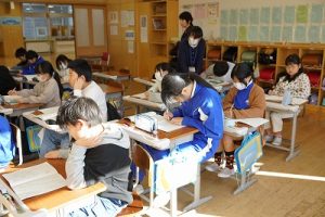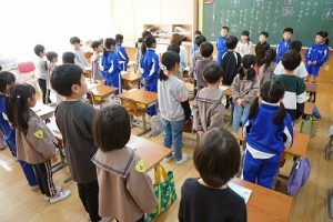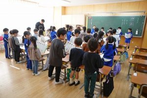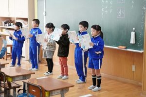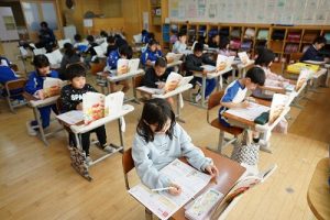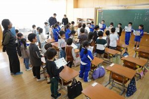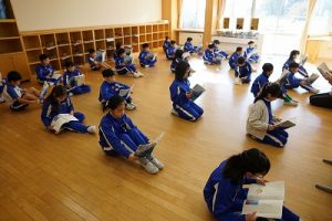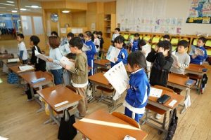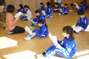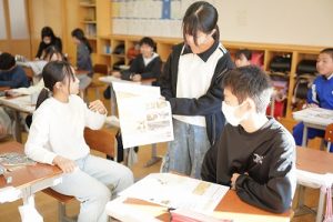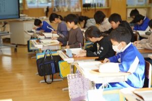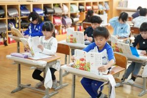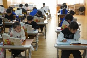 1校時の様子です。3年生は、マルチスペースで音読練習をしていました。1年生は、3校時に来年度入学予定児童が学校見学に来たときに学習の様子を見てもらうので、その打ち合わせをしていました。