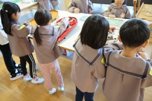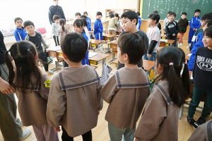 令和8年度入学予定児童が学校見学にやってきました。来年度は、5つの園から22名が入学してきます。今日は、「学校探検」「1年生の授業見学」「本の読み聞かせ」「STEAMミュージアムの体験」等を行いました。みなさんが入学してくるのを楽しみに待っています。