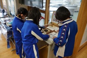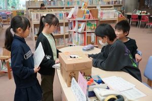 図書委員会では、休み時間に図書室に集まって話合いを行っていました。みんなにたくさん本を読んでもらえるように頑張っています。STEAMミュージアムでは、化石を古い順に並べ替えるクイズに挑戦している子どもたちがいました。「本物?」と聞かれたので、「全部本物だよ」と答えると驚いていました。