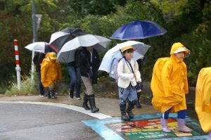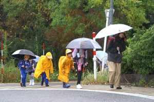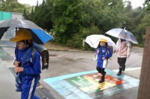 今日は、雨も風も強い朝でした。さすがに落ち葉を掃くことはできません。校門に立っているだけで、全身びしょ濡れという感じでした。かさも飛ばされそうです。こんな日でも、元気に歩いて登校してくるなんて、すごいことですね。子どもたちのたくましさに拍手を送ります。