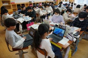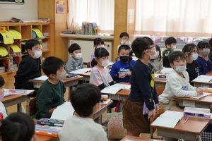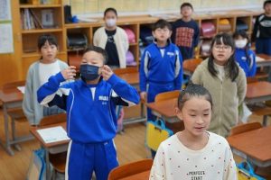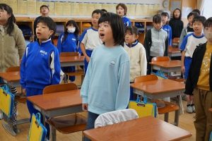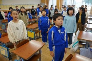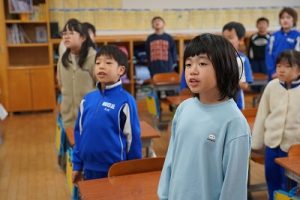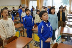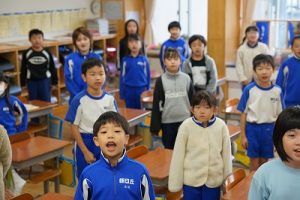 3年生は、朝の会で歌を歌っています。歌声がきれいで元気なのはもちろんでしたが、とても楽しそうな表情で歌っていたのが印象的でした。