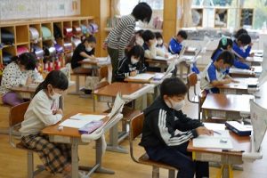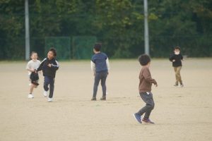 2校時後の休み時間のグラウンドの様子です。少し肌寒さを感じましたが、子どもたちは元気いっぱいです。
