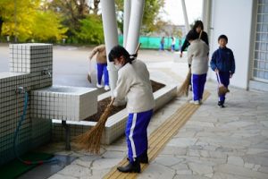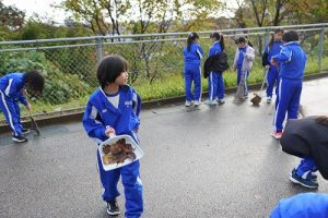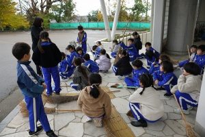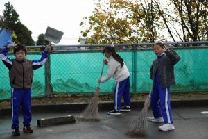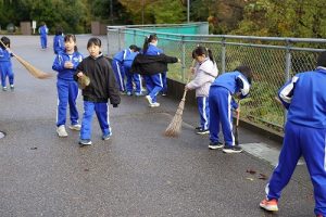 今日は、ユネスコスクールである富山市立神通碧小学校の全校児童がやってきます。3・4年生は、気持ちよく迎えようと、朝から落ち葉掃きをしてくれました。とてもきれいになりました。ありがとうございます。