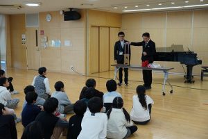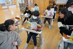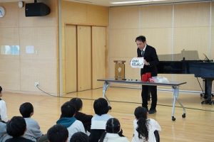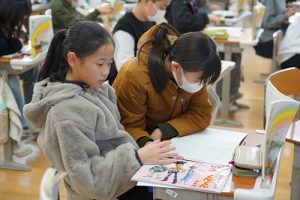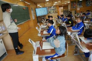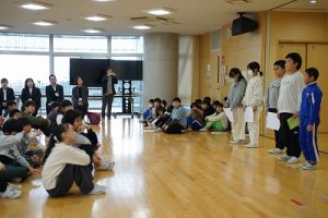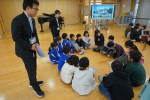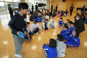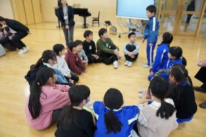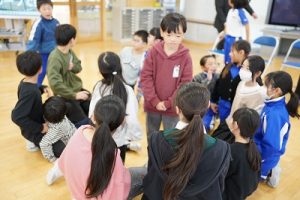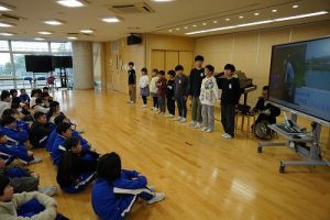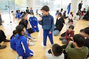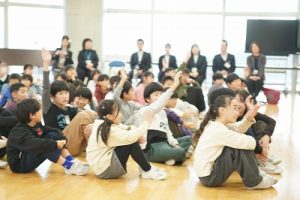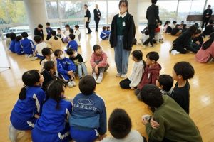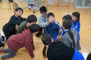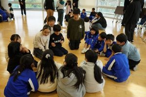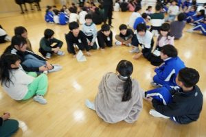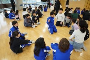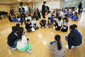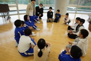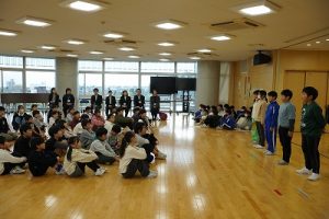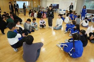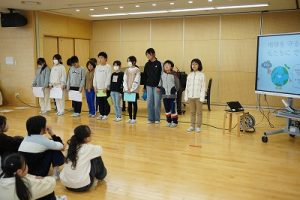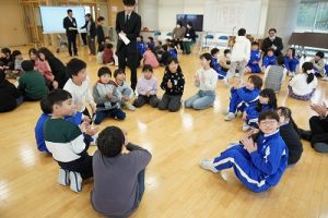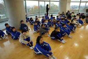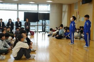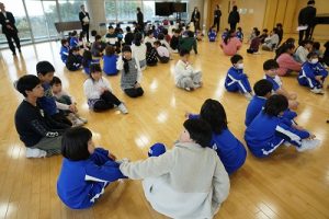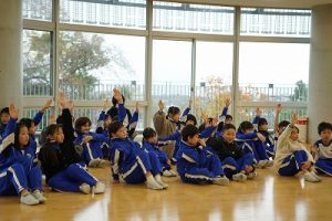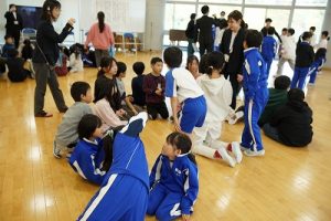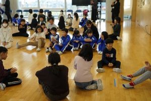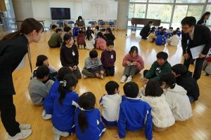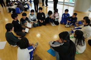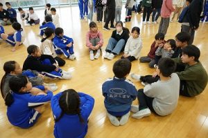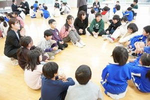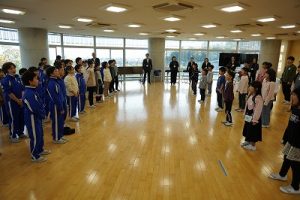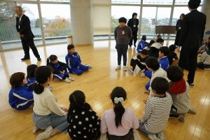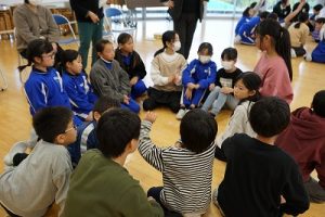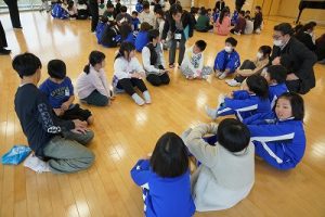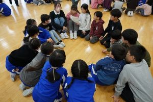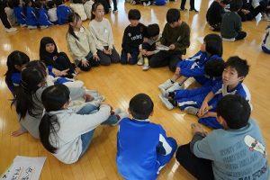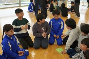 富山市立神通碧小学校の全校児童38名、先生方8名が来校されました。ユネスコスクール同士で交流しようということで、昨年度からスタートしました。体育の授業をしていた5年生は、昨年一緒に交流したので、玄関前で出迎え、再会を喜び合っていました。その後、3・4年生と一緒に交流しました。前半は、朝日丘小学校の4年生が、自分たちが行っているESDについて発表しました。そして、6グループに別れて、自己紹介やしりとり遊びで交流しました。
