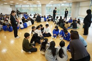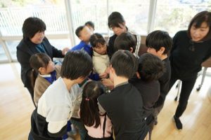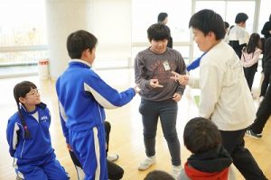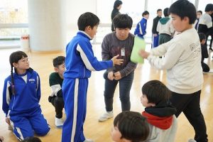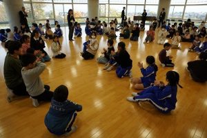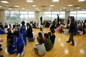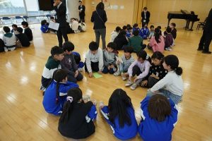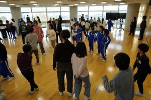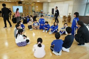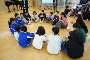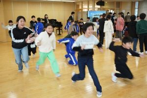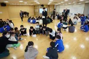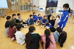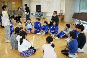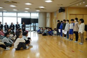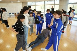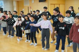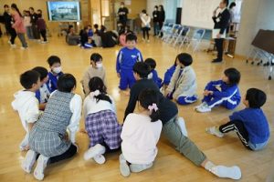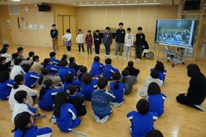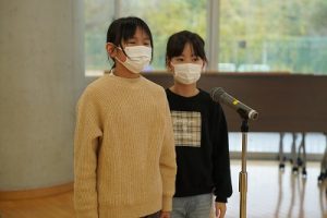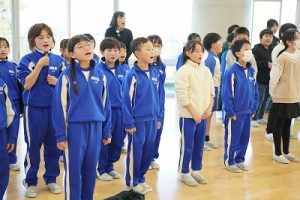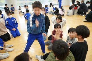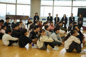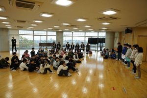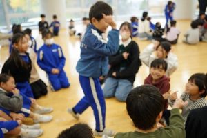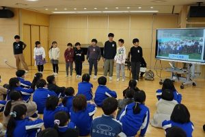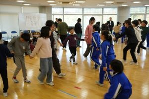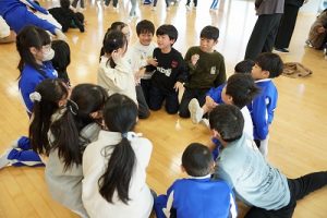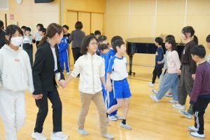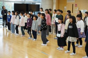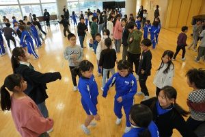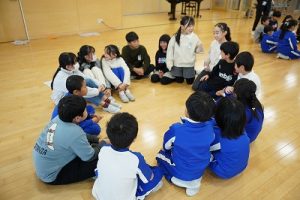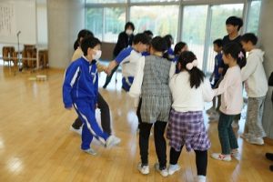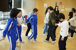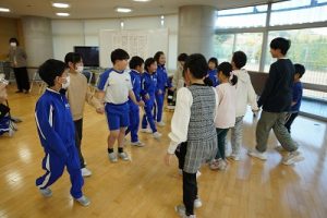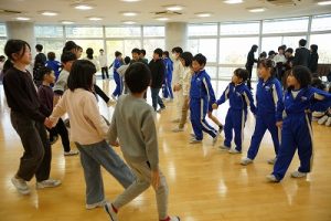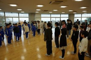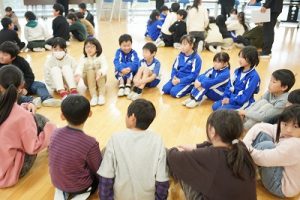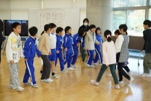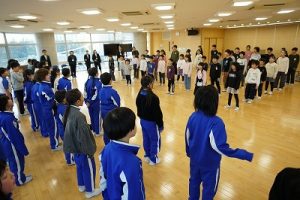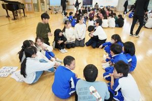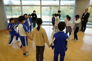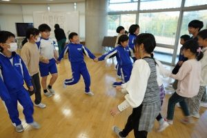 富山市立神通碧小学校との交流の後半の様子です。神通碧小学校のみなさんは、合唱を披露してくれました。本当にすばらしい感動的な歌声でした。そして、学校紹介、グループごとの交流と進みました。初めて会った子どもたちでしたが、あっという間に仲良くなり、「だるまさんがころんだ」「ハンカチ落とし」「花いちもんめ」などで、楽しく交流しました。