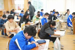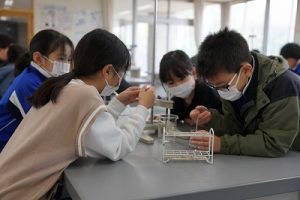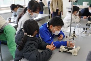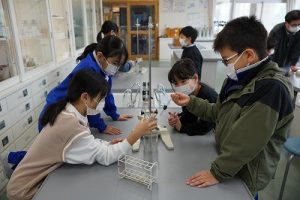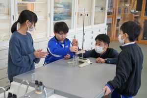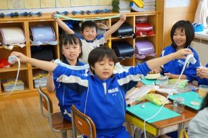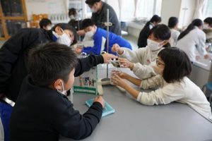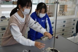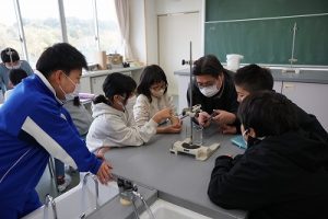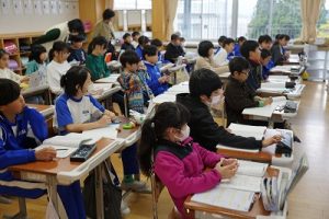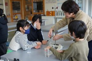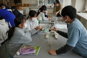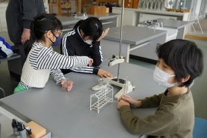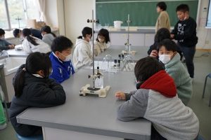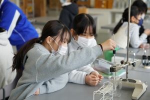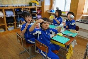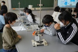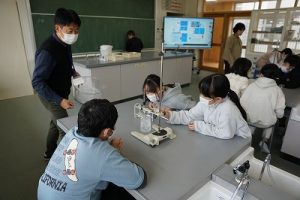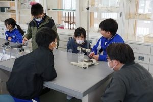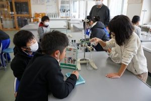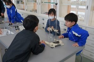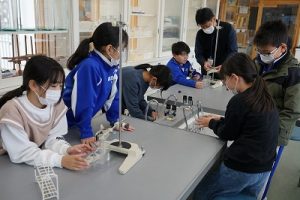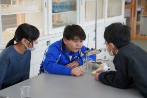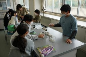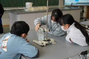 4年生の理科では、水の体積変化について実験していました。空気と違ってわずかしか変化しないため、細いガラス管で調べていました。集中して観察できましたね。
