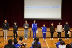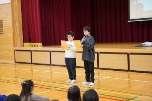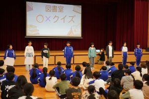 図書委員会が「本となかよくなろう集会」を開いてくれました。「おすすめの本の紹介」「図書室〇×クイズ」等を通して、読書の大切さや、図書室でのマナーについて伝えてくれました。また、運営委員会からは、「廊下を歩くことのよさ」をたくさん発表してくれました。これからも、様々な本に親しんでいってほしいと思います。