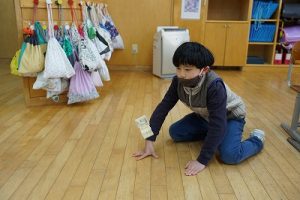 1年生の音楽科では、様々な打楽器をローテーションを組んで楽しんでいました。サンサンルームでは、踊りながら音を鳴らしていました。本当に楽しそうでした。