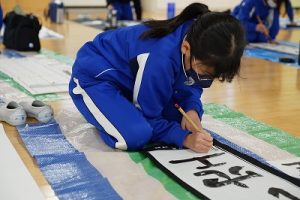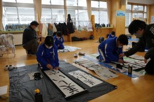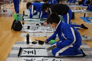 4年生は、オープンスペースで書初の練習をしていました。とても落ち着いた雰囲気で真剣に書く姿は筑紫委ですね。