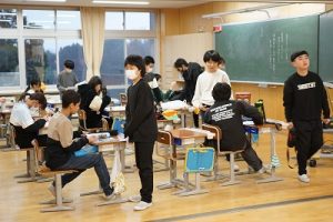 校舎内に戻ると、運営委員があいさつ運動をしていました。いつもは外で行っていますが、今日は悪天候のため、校舎内で行っていたようです。それぞれのクラスでは、いつも通りの元気な姿が見られました。今日も頑張りましょう。