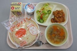 ・ピタパン ・牛乳 ・ヨーグルト ・チリコンカン ・ボイル野菜 ・コンソメスープ