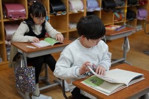 朝活動の様子です。1年生は、手洗いを時間をかけて丁寧に行っていました。3年生は、読書と読み聞かせを選んで行っていました。4年生は、アルミ缶等を持ってきてくれた人に、お礼をしに行っていました。2学期の残り3日間、体調管理を行いながら頑張りましょう。