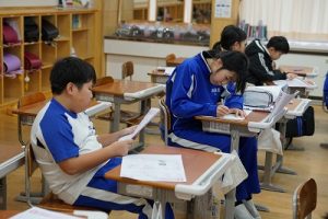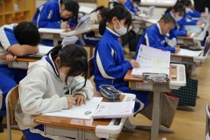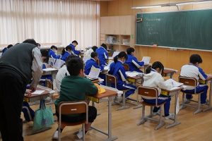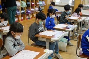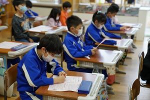 1校時の様子です。短縮校時ですので、短時間で集中して学習しています。