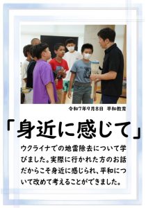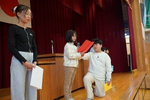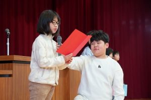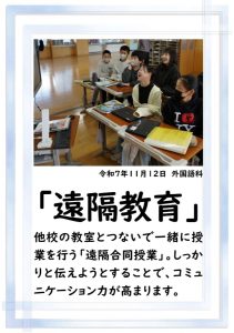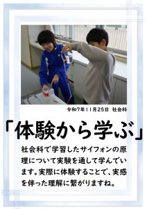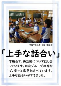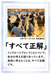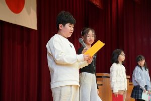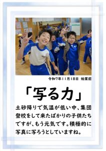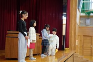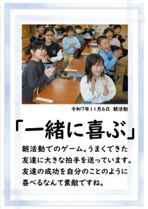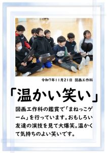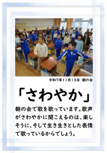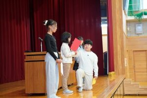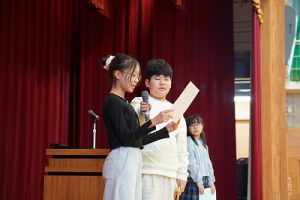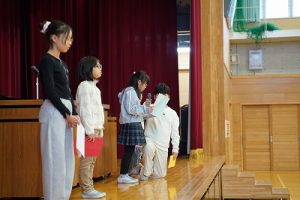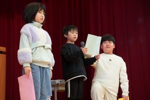 本日、2学期の最終日を迎えました。 振り返れば、8月の暑い時期から始まり、深まりゆく秋、そして寒さの厳しい今日まで、子供たちは一生懸命に学習や運動に取り組み、たくさんの思い出を作ることができました。それも、毎日の学校生活において、保護者や地域の皆様から温かい支援をいただいたこと、また、子供たちの安全を優しく見守ってくださったことのおかげだと感謝しております。冬休みは、家族や地域での行事も多い時期かと思います。健康と安全に気をつけながら、この時期ならではの体験をたくさんしてほしいと願っています。どうぞ健康に留意され、穏やかな新年をお迎えください。本当にありがとうございました。今後とも、どうぞよろしく願いします。