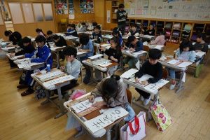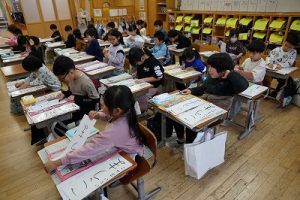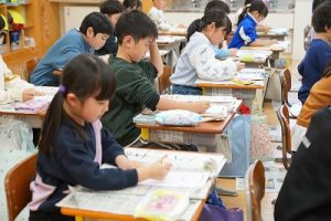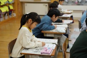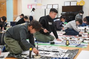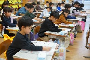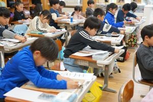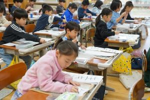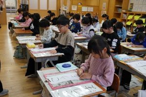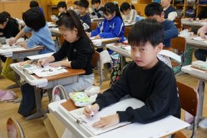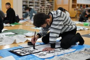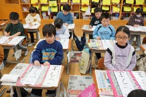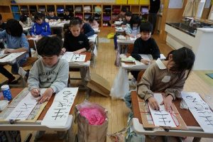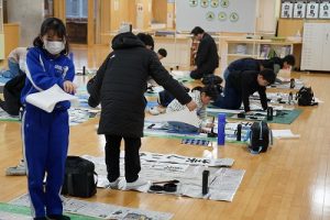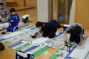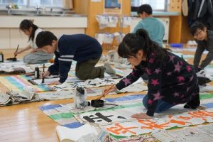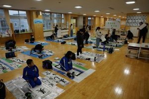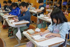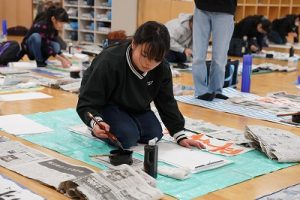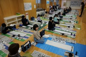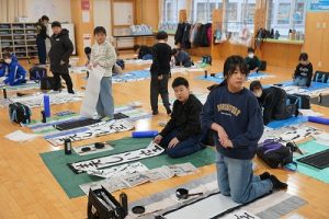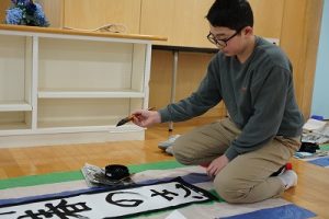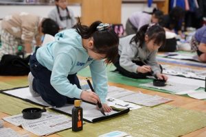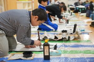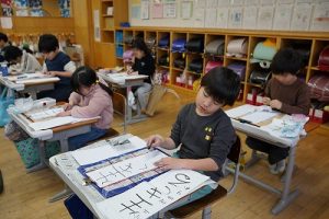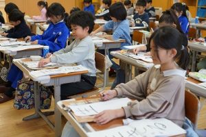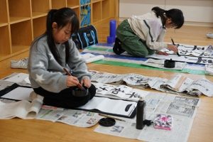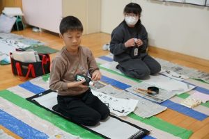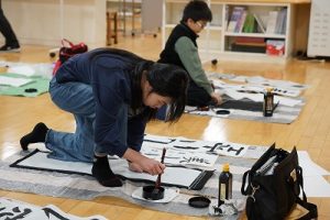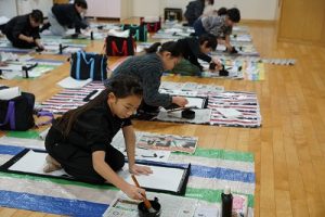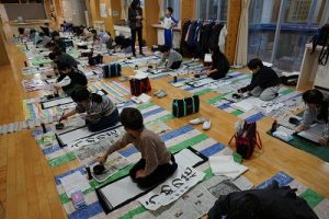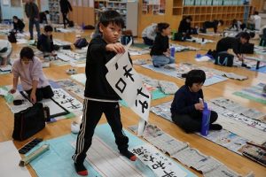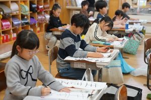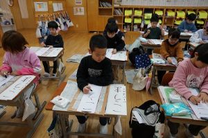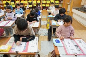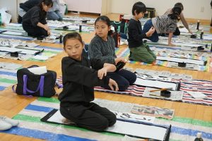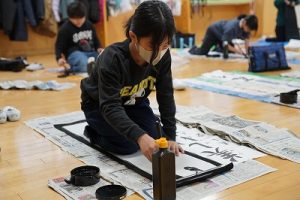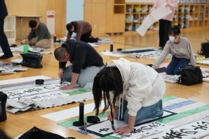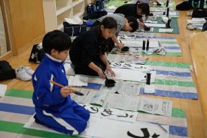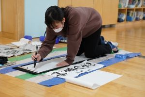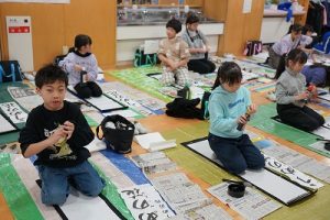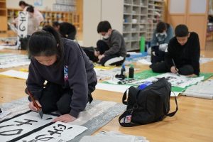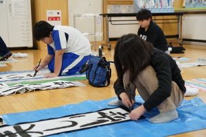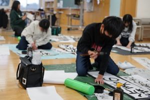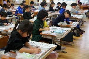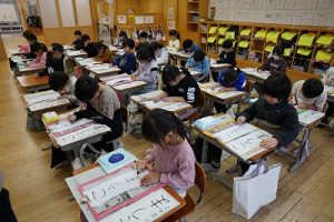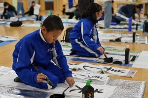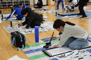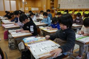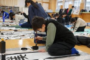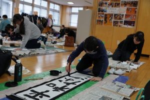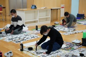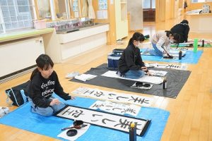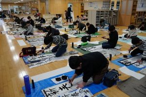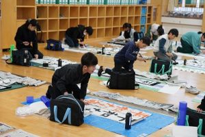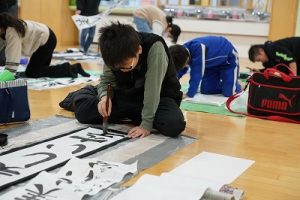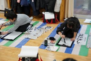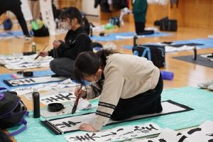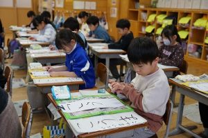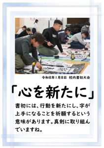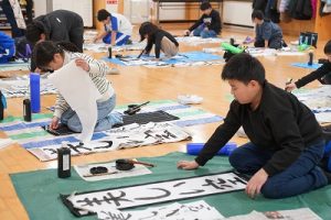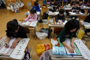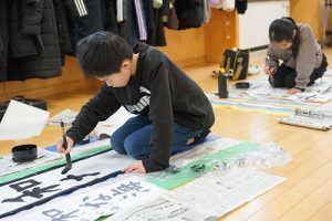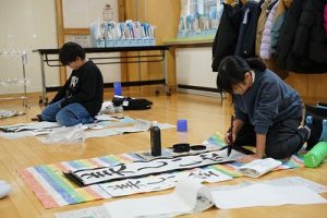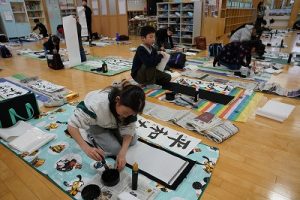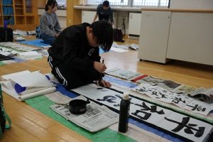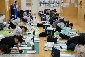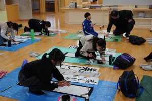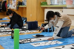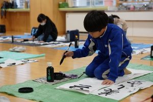 校内書初大会が行われました。とても真剣に取り組んでいました。冬休み中の練習の成果を発揮できたことでしょう。