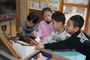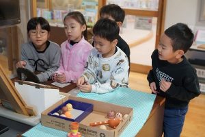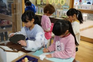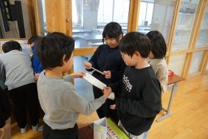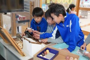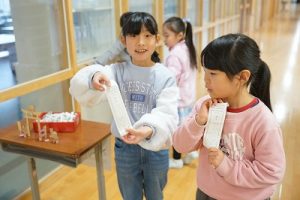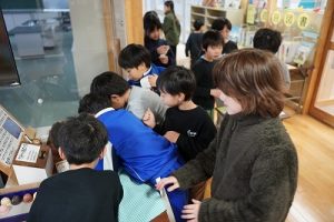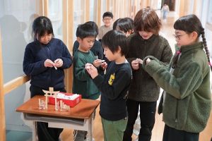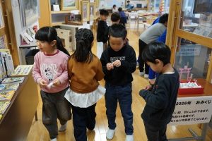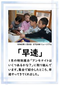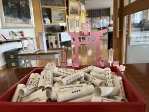 新年を迎えたことから、STEAMミュージアムの入り口に、おみくじを置きました。鳥居も設置しました。また、1月の特別展示として、アンモナイトの数を数えるものを置きました。神社のおみくじは「凶」が入っていないところもあるそうですが、このおみくじには「凶」も入っています。逆にレアかもしれません。休み時間には、たくさんの子供たちが来てくれました。