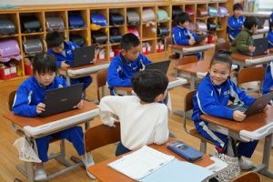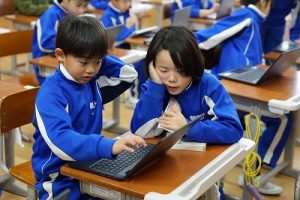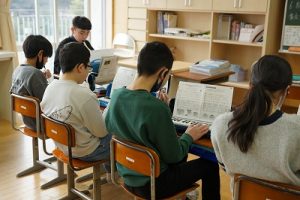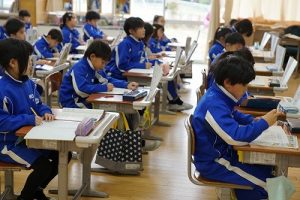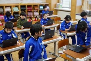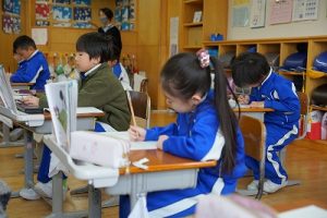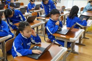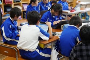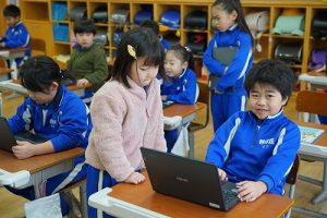 登校してすぐの、いわゆる「自由時間」です。準備ができた人から、好きなことをしています。2年生は、タブレットPCでかけ算九九のゲームをしている子どもが多くいました。今週も頑張りましょう。