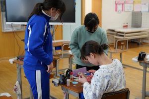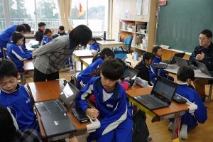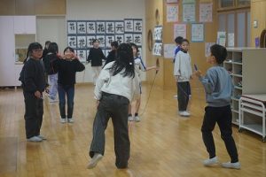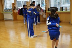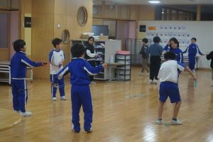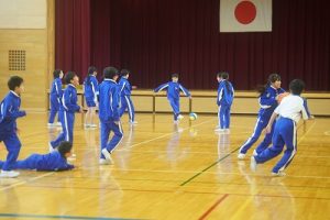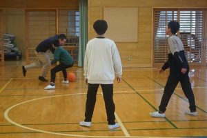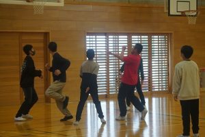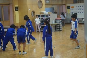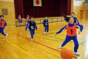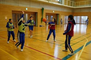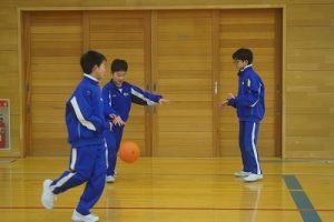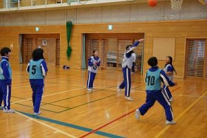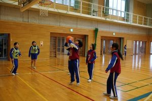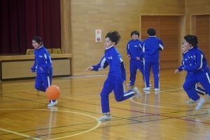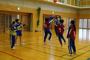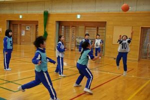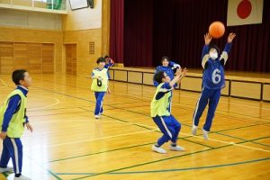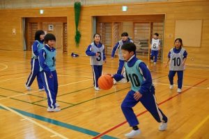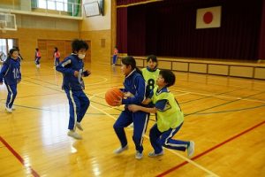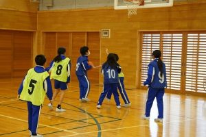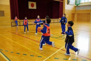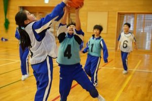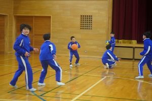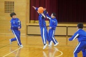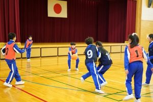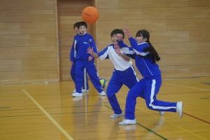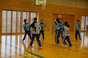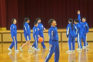 5年生の体育科では、バスケットボール(3on3)の練習を行っていました。得点を入れた人が選手交代となるよう進めていたので、めまぐるしく動いていました。運動量がしっかりと確保されています。