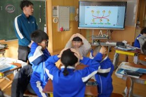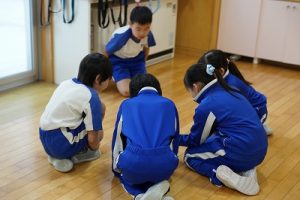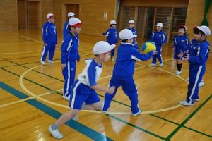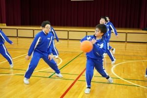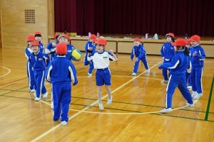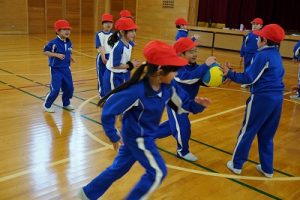 3校時の様子です。1年生の体育、「ボール回しvsかけっこ」が楽しそうでした。