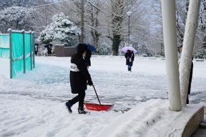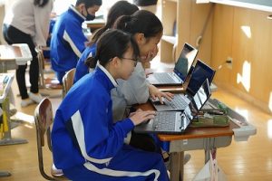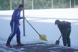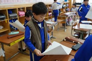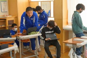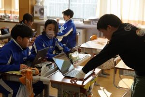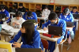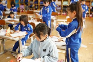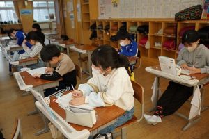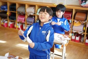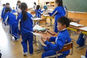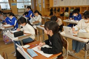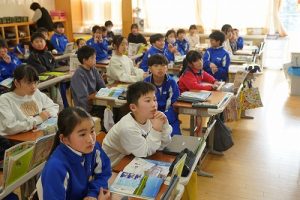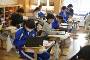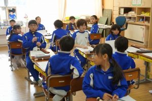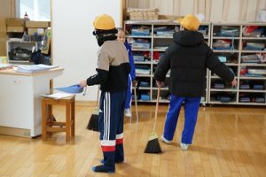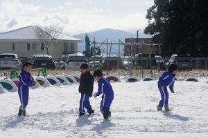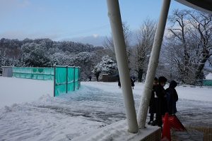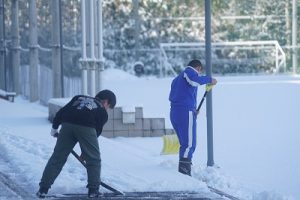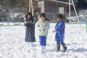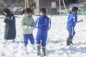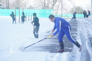 登校時には雪が降っていましたが、子どもたちは元気に登校してきました。中には、「雪かきをしていいですか」と聞いてくる子どもいたので、「やってくれるの? ありがとう」と答えると、「やったー」と言って始めてくれました。すごいですね。