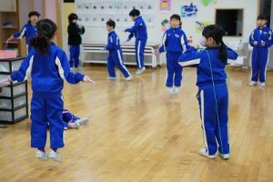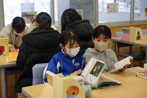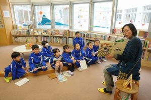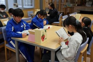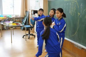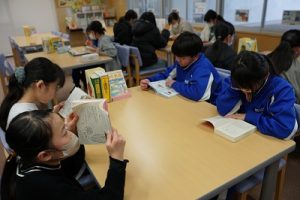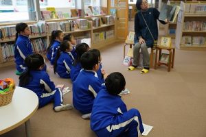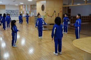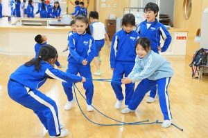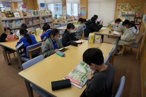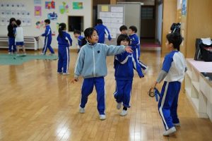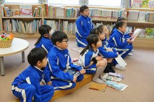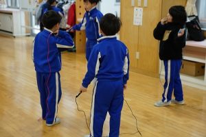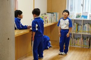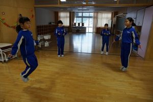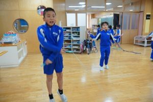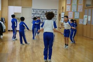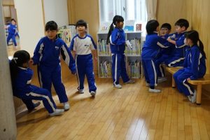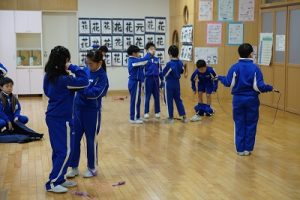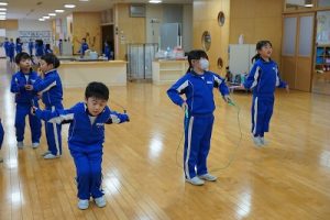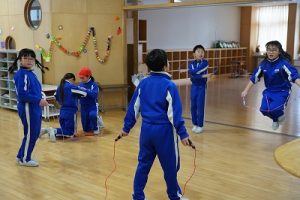 昼休みの様子です。今日も、昨日に引き続いて「お話タイム」が行われました。リピーターさんがたくさんいますね。3年生は、5校時が体育で縄跳びをするようです。すでに準備運動ができているくらいですね。