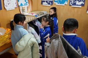 教室では、いつも通りの元気な子どもたちの姿が見られました。そうこうしている間に、晴れ間が見えてきました。休み時間には雪遊びができそうです。