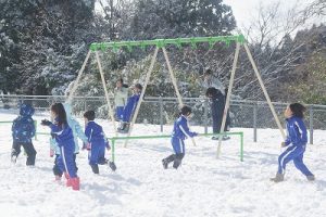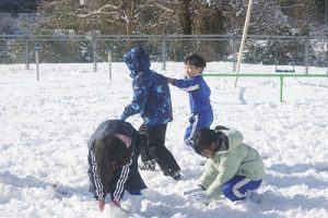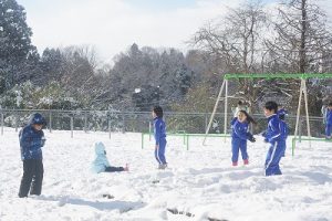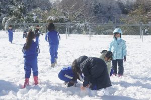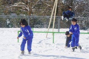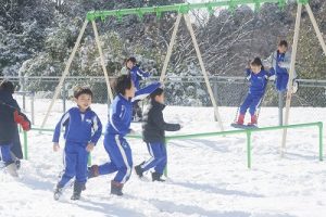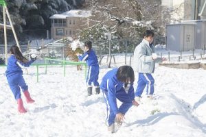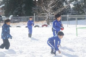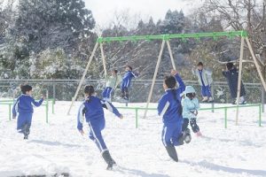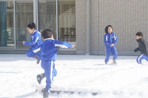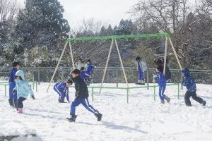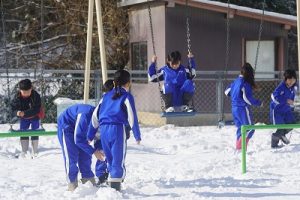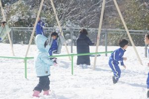 登校時に降っていた雪もやみ、休み時間にはお日様が出て暖かな陽気となりました。プレイグラウンドでは、2年生の子どもたちが、雪合戦や雪だるま作りを楽しんでいました。こんなときでも、ブランコが楽しいのですね。玄関前では、除雪をしてくれている子どもがいました。「雪かき楽しい!」と言っていました。