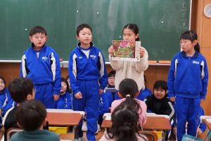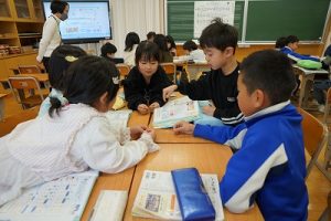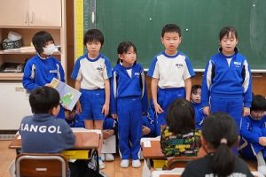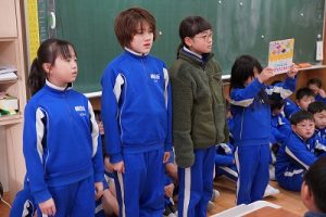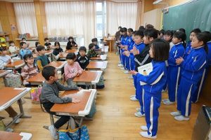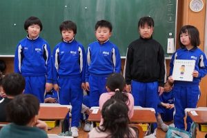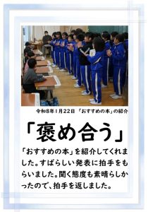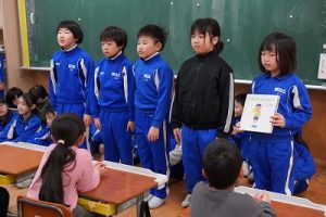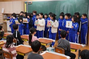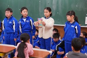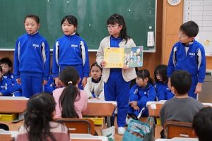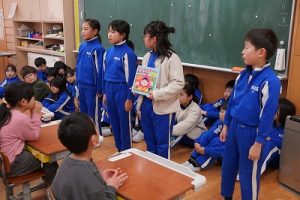 朝活動の時間に、3年生が1年生教室へ行き、「おすすめの本」を紹介してくれました。発表態度も、聞く態度も、本当に素晴らしいものでした。これを機会に、ますます本を好きになってくれると嬉しいです。