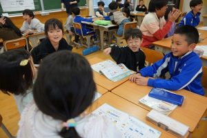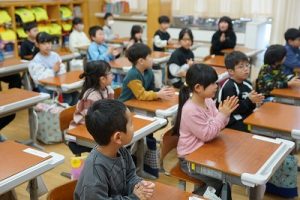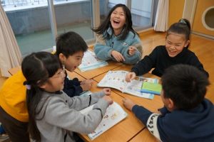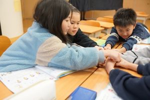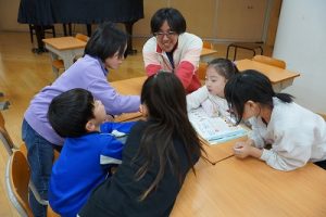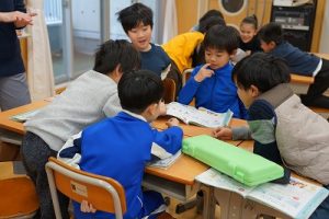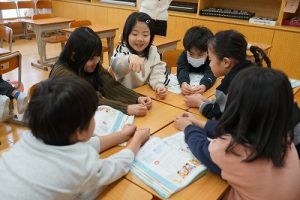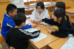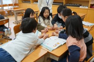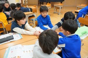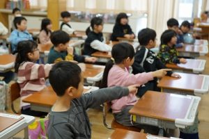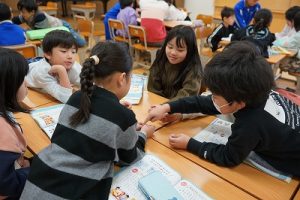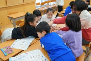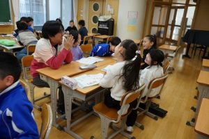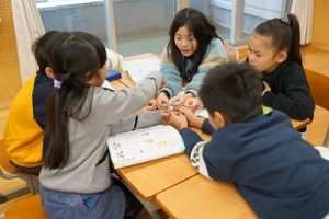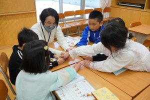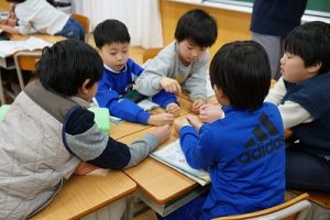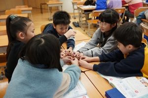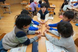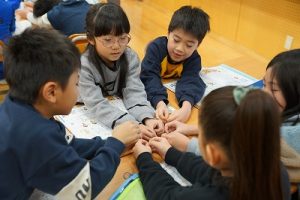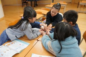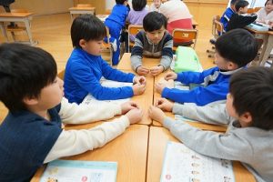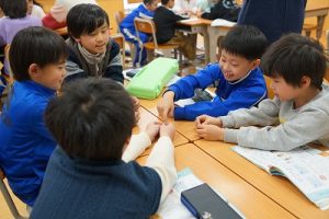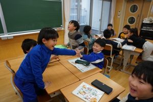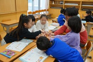 2年生の音楽科では、わらべ歌「ずいずいずっころばし」を遊びながら歌っていました。とても楽しそうですね。わらべ歌を楽しめるのは、学校だからです。勉強は一人でできたとしても、友達と関われるのは学校だからですね。